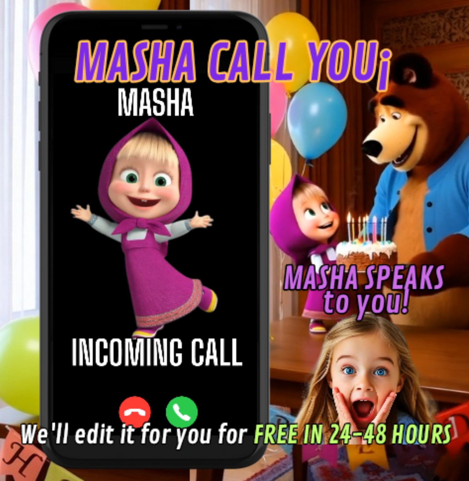 This unique and original video invitation is a spectacular way to congratulate your children. Masha will video call them to wish them a happy birthday or to invite their friends and family.